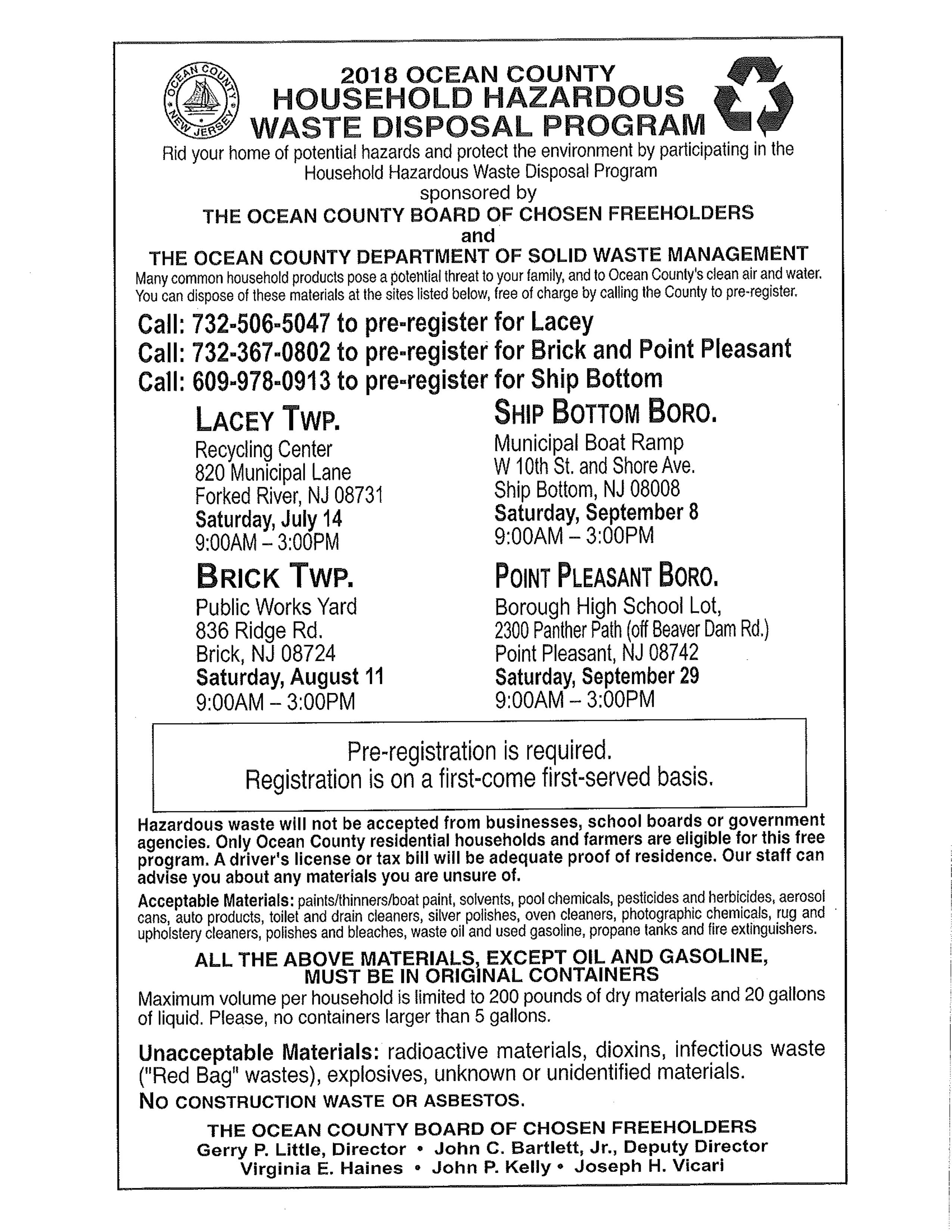 Household Hazardous Waste Dates Borough Of Point Pleasant